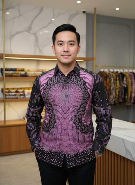 Motif batik dikerjakan dengan detail yang presisi, menghadirkan kesan maskulin, elegan, dan eksklusif. Cocok digunakan untuk acara resmi, kerja, kondangan, hingga tampilan harian yang tetap berwibawa.