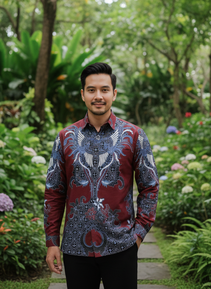 Kemeja Batik Lengan Panjang. Motif Paksi Abinaya